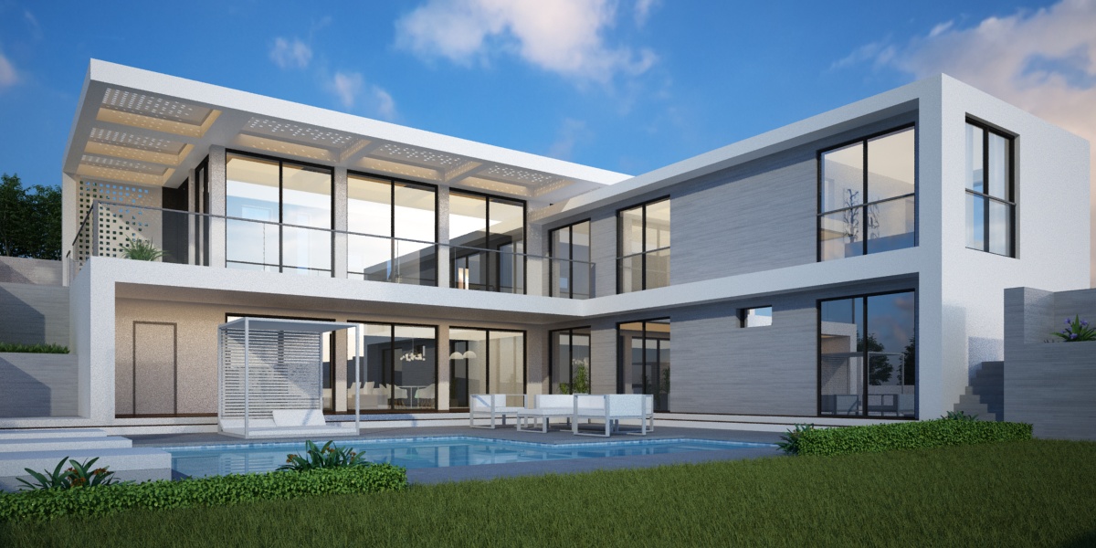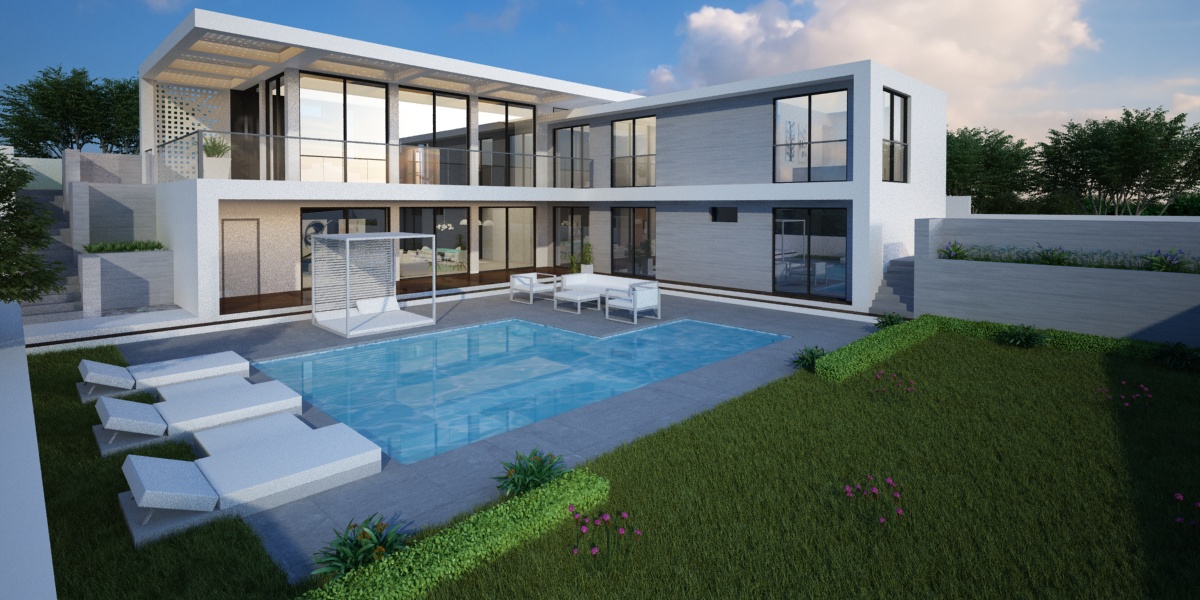 Deze gebouwde villa van 382m2 heeft een overdekt terrasgedeelte van 78m2, verdeeld over 2 verdiepingen met 6 slaapkamers en 4 badkamers. Op de eerste verdieping zijn 3 slaapkamers, 2 badkamers, een ruime woonkamer met open designerkeuken en een mooi terras met uitzicht op de tuin en het zwembad. Op de begane grond is een bijna exacte kopie van het bovenste verdiepingsniveau, met een bijkeuken, 3 tweepersoonskamers, 2 badkamers, een woonkamer en een open keuken met directe toegang tot het zwembad en de tuin. Deze villa kan worden gebouwd op een vlak of zacht hellend perceel.