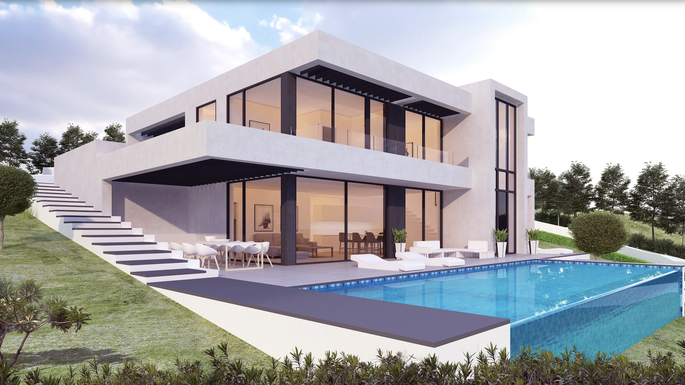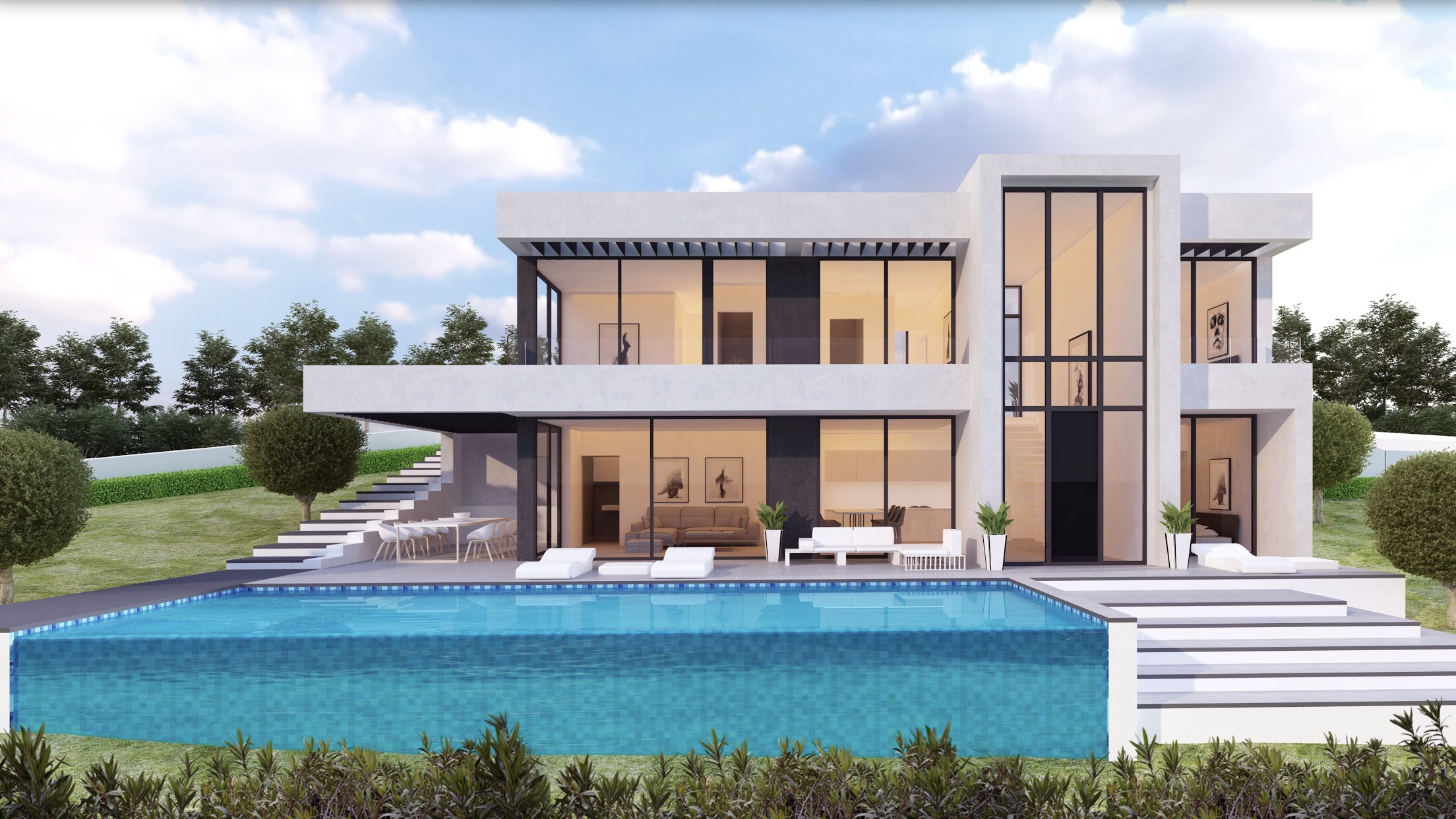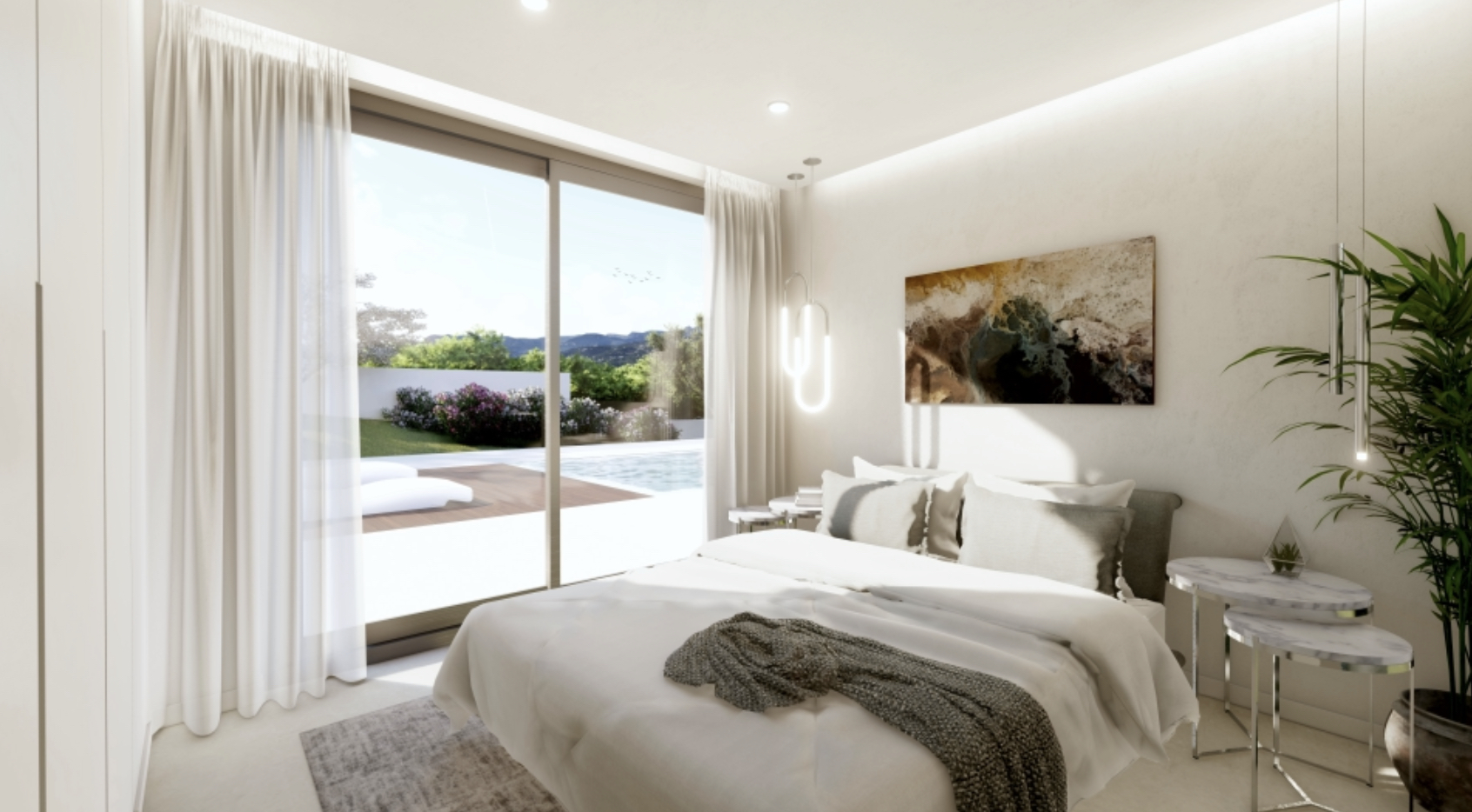 Een zeer exclusieve woning met 4 slaapkamers en 4 badkamers van 280m2 (inclusief 92m2 overdekte terrassen). Er is een zeer indrukwekkende dubbelhoge entreehal met open trap naar de eerste verdieping. Op de begane grond bevindt zich 1 ensuite slaapkamer, een open woon-keukengedeelte met directe toegang tot het terras en het zwembad, een ruime bijkeuken en een garderobe. Op de eerste verdieping zijn 2 tweepersoonskamers, beide ensuite, en de masterbedroom ensuite met een vrijstaand bad en een inloopkast. Er is een terras dat rondom alle slaapkamers op de eerste verdieping loopt. Daarnaast beschikt u over het overloopzwembad met luizengedeelte, jacuzzi en een buitenkeuken.