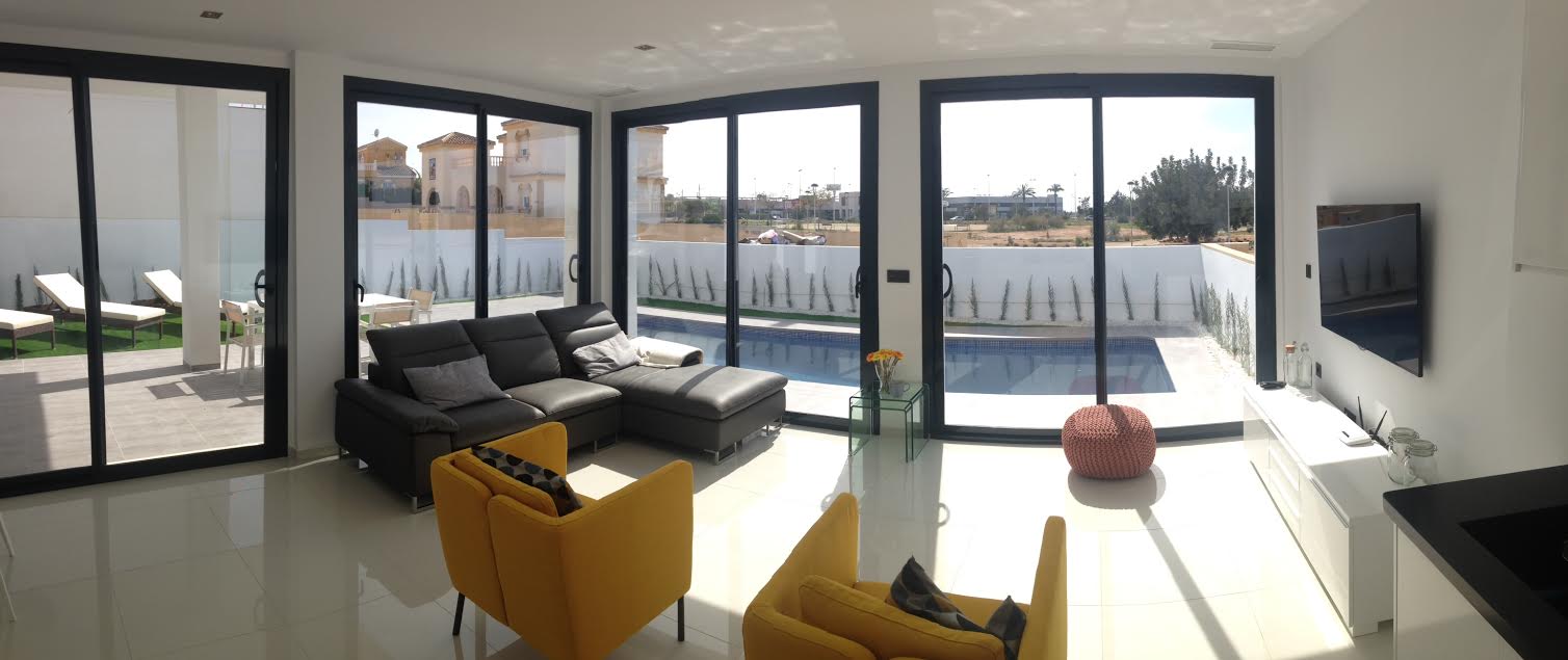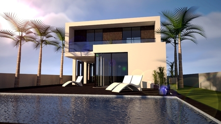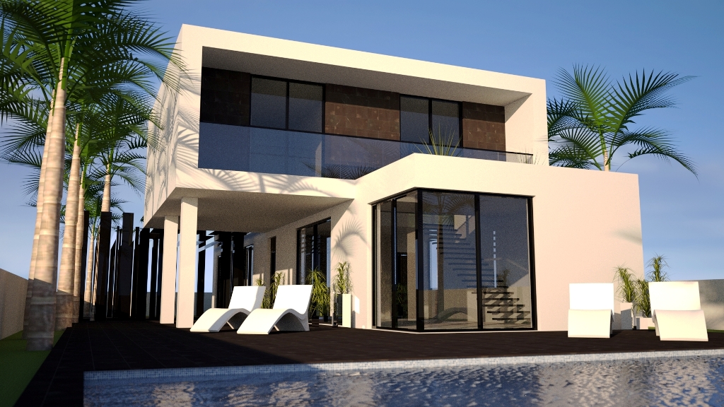 Dit is een van onze kleinere villa's op maat die wij aanbieden. De villa is 182m2 inclusief 66m2 terrassen, heeft 3 slaapkamers en 2 badkamers, een aparte garderobe, een open keuken met geïntegreerde elektrische Bosch-apparatuur en een centraal airconditioningsysteem dat op beide verdiepingen te bedienen is. Binnen gebruiken we 60x60 witte porseleinen tegels op de vloer, gepolijste betonnen trap met strakke witte stucco overal. De villa beschikt over vloer-tot-plafond ramen op elke verdieping, glazen balustrades en elektrische luiken. Buiten hebben we een 3x10 privézwembad, een groot overdekt terras gecreëerd door de structurele uitkraging van de 1e verdieping, en een groot terras op de 1e verdieping met open uitzicht op de bergen of de zee, afhankelijk van de locatie.