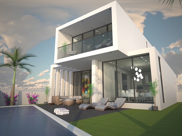 Deze villa van 185m2 beschikt over een woonkamer van 26m2 en een keuken-eetruimte die beide uitkomen op het terras, alsook een slaapkamer met ensuite badkamer, alles op de begane grond. Op de eerste verdieping zijn 2 slaapkamers met ensuite en een balkon van 7m2 met prachtig uitzicht. De villa wordt standaard geleverd met een 8x4 privézwembad en 21m2 overdekte terrassen.