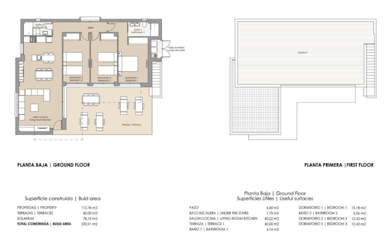 Deze vrijstaande villa, op èèn niveau, bestaat uit een ruime woonkamer met hoge ramen die toegang verlenen tot de privé tuin met terras (40 m²) en zwembad, een moderne open keuken, drie tweepersoonsslaapkamers met inbouwkasten, twee badkamers (waarvan één en-suite) en een groot dakterras/solarium (80 m²), en een berging.