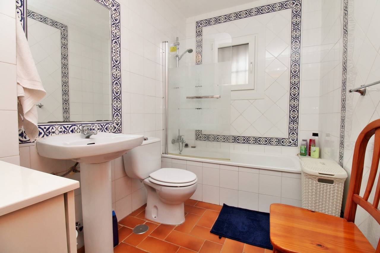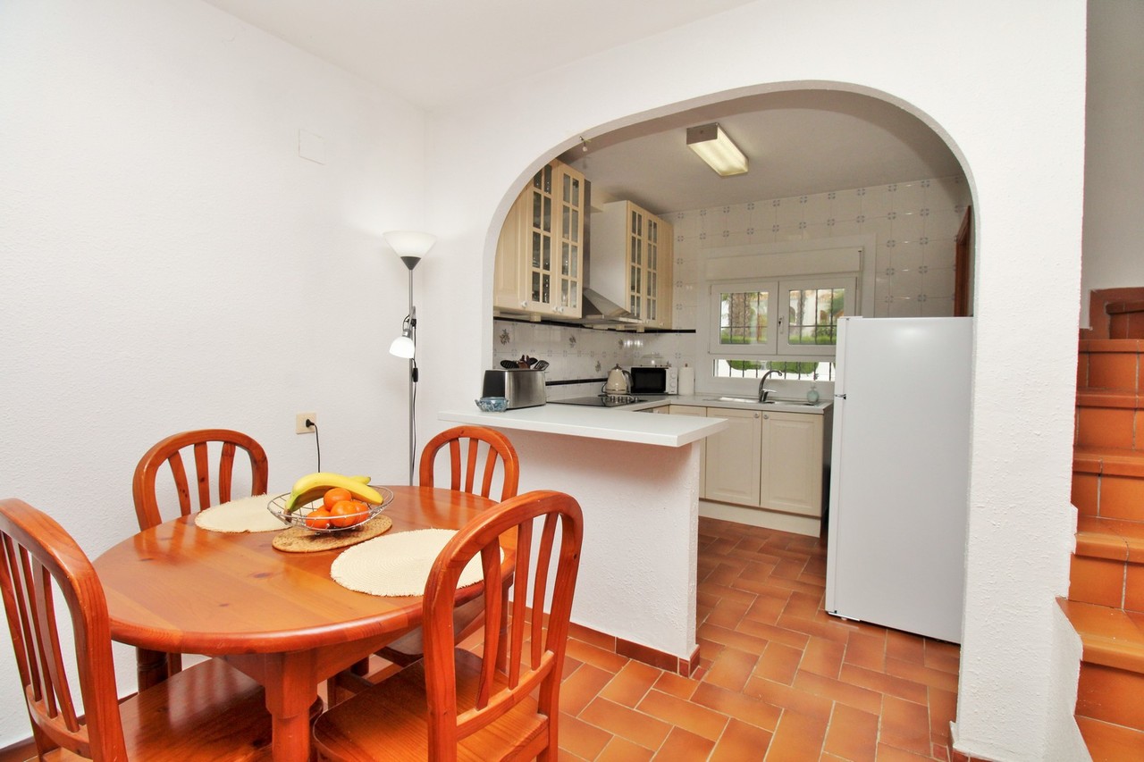De begane grond bestaat uit een ruime woon- en eetkamer met gastentoilet, een open keuken aan de achterzijde, een bijkeuken en directe toegang tot de achtertuin. Op de eerste verdieping bevinden zich twee tweepersoonsslaapkamers met inbouwkasten en een gezinsbadkamer. De hoofdslaapkamer heeft een privé zuidgericht balkon met uitzicht op de fontein van Verdemar III. Via de overloop is er toegang tot het dakterras, dat prachtig uitzicht op zee biedt. De woning wordt gemeubileerd verkocht en is voorzien van airconditioning.