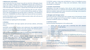 Appartementen met één of twee slaapkamers, met ruime terrassen, tuinen of een eigen dakterras/solarium, met hoogwaardige afwerkingen, waaronder airconditioning (koeling/verwarming) en volledig ingerichte keukens met inbouwapparatuur.