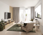 De woning bestaat uit een lichte moderne woonkamer/eetkamer, een open keuken, drie slaapkamers met inbouwkasten, drie badkamers plus een apart gastentoilet, LED verlichting (binnen/buiten), alarmsysteem, video/intercom systeem, ventilatiesysteem, pre-installatie voor airconditioning (koeling/verwarming) voorzien in het hele pand. Elke unit heeft een parkeerplaats + berging inbegrepen in de prijs!