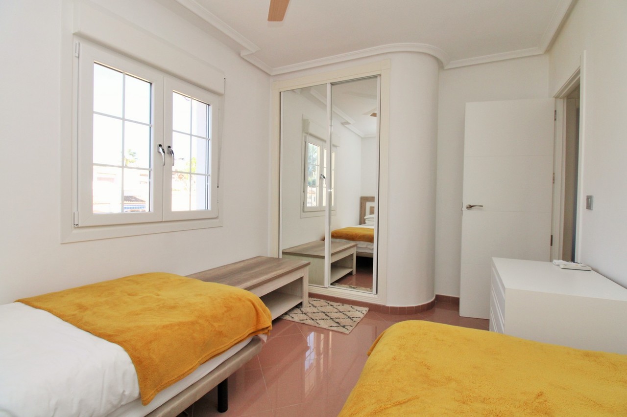 Gelegen in de gewilde woonwijk Costa Flamenca Golf in Los Dolses, biedt deze prachtig gerenoveerde halfvrijstaande villa met 3 slaapkamers en 2 badkamers een uitstekende combinatie van comfort, stijl en buitenleven. Op loopafstand van La Zenia Boulevard, diverse bars en restaurants, en slechts een korte rit naar de bekroonde stranden van de Orihuela Costa — ideaal als permanente woning of luxe vakantieverblijf.