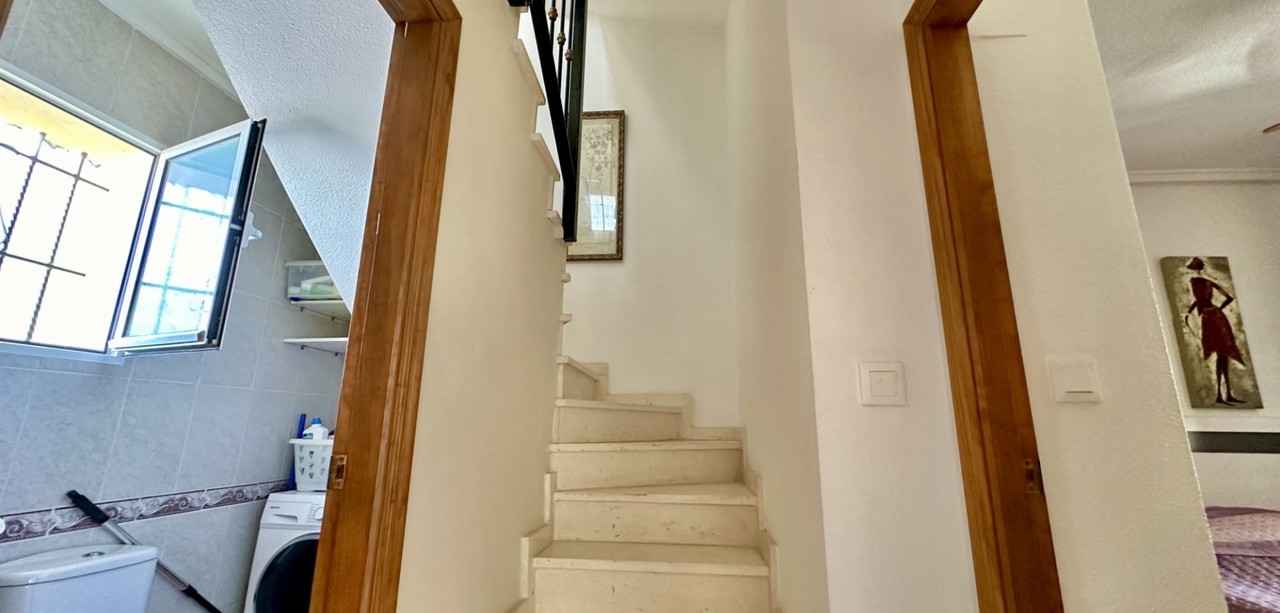 Ontdek deze goed onderhouden halfvrijstaande woning in de rustige en populaire wijk Los Altos, Orihuela Costa.Gebouwd in 1997 op een perceel van 131 m², in uitstekende staat en klaar om in te trekken. De woning beschikt over 3 slaapkamers, 2 badkamers, een lichte woon- en eetkamer en een volledig uitgeruste keuken.Er is volop buitenruimte met een terras, balkon en privé-solarium — perfect om te ontspannen of gasten te ontvangen. Wordt verkocht gemeubileerd en met airconditioning.Gelegen in een mooi complex met gemeenschappelijk zwembad en groene zones, dicht bij winkels, restaurants en op korte afstand van de stranden Playa Flamenca en La Zenia. Perfect als permanente woning, vakantiehuis of investering.