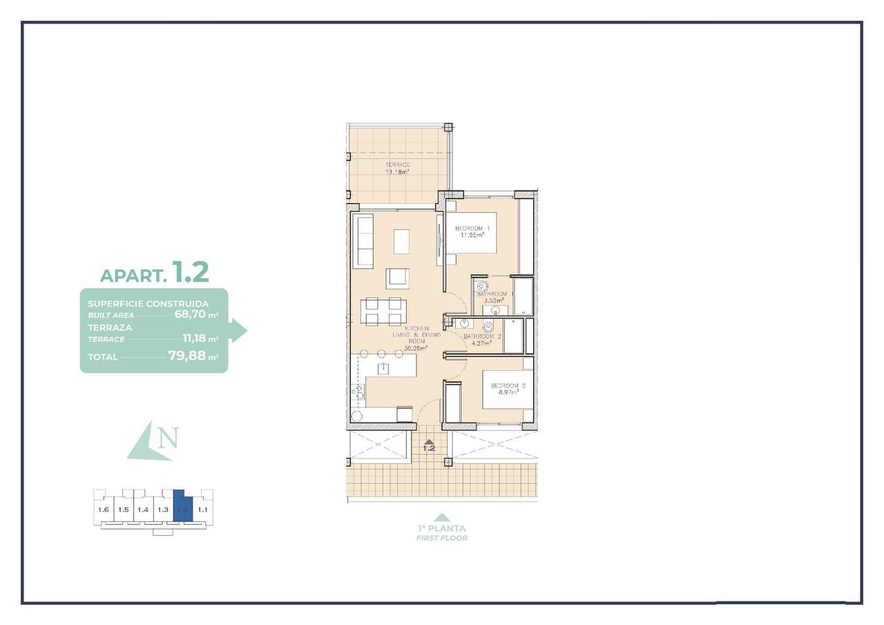 NIEUWBOUW RESIDENTIEEL IN LOS ALCAZARES De nieuwbouwwijk bestaat uit 32 appartementen en penthouses met 2 en 3 slaapkamers en 9 exclusieve villa’s met een combinatie van modern design, kwaliteit en functionaliteit. De onovertroffen locatie biedt een prachtig uitzicht op de golfbaan en de zee van Mar Menor. Moderne woningen met open keuken en de woonkamer, inbouwkasten, terrassen, parkeerplaats en bergingen. Penthouses hebben een eigen solarium. Residentieel gelegen in een frontlinie van de prestigieuze golfbaan “La Serena Golf”. Deze golfbaan staat bekend om zijn meren en vegetatie die zich met de golfbaan verweven. Het water en de meren zijn aanwezig in 16 van de 18 holes, maar de hele baan is ontworpen om de golfer verschillende strategieën te bieden in elke hole. Een ander aspect dat deze golfbaan uniek maakt is dat het te voet verbonden is met het stadscentrum, iets wat onmogelijk te vinden is in andere golflocaties die ons in staat stellen om te genieten van de rust en de schoonheid van het gebied zonder de toegang tot de diensten die Los Alcázares biedt te weigeren. Residentieel gelegen in Los Alcázares een uitzonderlijk gebied aan de Costa Cálida op slechts 25 minuten van het vliegveld van Murcia en 55 minuten van het vliegveld van Alicante. Het gebied is via de snelweg verbonden met de steden Cartagena, Murcia en Alicante en de rest van de stranden van de Costa Cálida en de Costa Blanca.