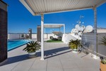 Wij presenteren dit prachtige appartement op de derde (bovenste) verdieping van een gebouw met lift, gelegen in een rustige en goed bereikbare wijk van Los Montesinos. Met een woonoppervlak van 78 m² combineert deze woning comfort, functionaliteit en een moderne stijl, waardoor het een ideale ruimte is om het hele jaar door te wonen of voor een vakantie. Ruime en goed verdeelde kamers: Bij binnenkomst in het appartement wordt u begroet door een lichte en luchtige sfeer dankzij de oostelijke ligging, waardoor zonlicht en natuurlijk licht de hele dag gegarandeerd zijn. De woon-/eetkamer loopt naadloos over in de open keuken, waardoor een vloeiende en uitnodigende ruimte ontstaat, perfect voor dagelijks gebruik of om gasten te ontvangen. Het appartement beschikt over twee slaapkamers met vrijstaande kasten, evenals een extra inbouwkast in de hal, die voldoende opbergruimte biedt zonder dat dit ten koste gaat van de bruikbare ruimte. Het appartement heeft ook twee complete badkamers (één met ligbad en de andere met douche), ontworpen voor het comfort en de praktische bruikbaarheid van het hele gezin. Buitenruimtes die uitnodigen tot ontspanning: Het balkon van het appartement is ideaal om te genieten van de frisse lucht, te lezen, een kopje koffie te drinken of gewoon te ontspannen bij zonsondergang. Het gebouw biedt ook een gemeenschappelijk solarium, perfect om te zonnebaden en te genieten van het vrije uitzicht, evenals een barbecueplek om onvergetelijke momenten te delen met vrienden of familie. Op het solarium bevindt zich ook een aparte ruimte met een gemeenschappelijk zwembad waar u op warmere dagen kunt afkoelen, twee nieuwe aluminium schaduwplekken en een adembenemend uitzicht op het omliggende landschap. Verder beschikt het gebouw over: LiftIntercomPrivégarage – 2 parkeerplaatsen inbegrepenHet appartement wordt gemeubileerd opgeleverd en is voorzien van apparatuur, dus het is volledig instapklaar. Het beschikt ook over airconditioning, wat comfort het hele jaar door garandeert. Strategische locatie: De locatie is perfect voor wie rust zoekt zonder in te leveren op voorzieningen en recreatiemogelijkheden: 15 minuten van het strand40 minuten van de luchthavenSlechts 3 minuten lopen van uitgaansgelegenheden, restaurants en winkels10 minuten van de golfbaan, ideaal voor golfliefhebbers
