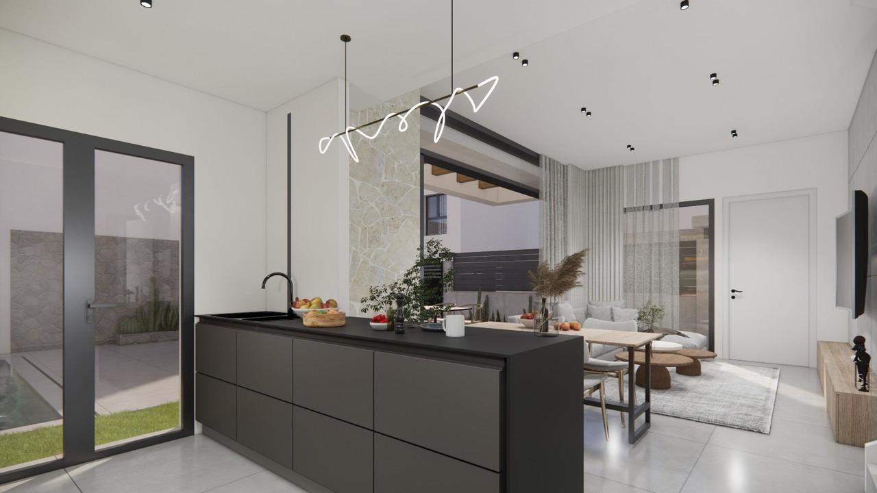 Moderne nieuwbouwwilla’s in La Herrada Los Montesinos met privézwembad Exclusief woonproject in een rustige omgeving Deze exclusieve ontwikkeling van 16 moderne villa’s ligt in de prestigieuze urbanisatie La Herrada in Los Montesinos en biedt privacy, comfort en een uitstekende levenskwaliteit. La Herrada staat bekend om zijn rustige woonomgeving, de nabijheid van dagelijkse voorzieningen en de bevoorrechte ligging tussen de beroemde zoutmeren van Torrevieja en La Mata. Het is een ideale locatie voor wie op zoek is naar een ontspannen en gezonde mediterrane levensstijl in het zuiden van de Costa Blanca. Eigentijds ontwerp met geoptimaliseerde binnenruimtes Elke villa heeft 110 m² goed geplande woonruimte, verdeeld over twee verdiepingen, ontworpen om natuurlijk licht en functionaliteit te maximaliseren. De woningen zijn gebouwd op percelen vanaf 185 m² en bieden royale buitenruimtes die perfect zijn om te zonnebaden, te entertainen of te ontspannen bij het privézwembad. Comfortabele indeling over twee verdiepingen De begane grond beschikt over een open woonkamer met een volledig geïntegreerde keuken en directe toegang tot de tuin en het zwembad. Op deze verdieping bevinden zich ook een slaapkamer, een complete badkamer en een handige wasruimte. Op de bovenverdieping zijn er twee ruime slaapkamers, elk met een eigen badkamer, waarvan één en suite. Beide slaapkamers hebben toegang tot een privé terras van 17 m². Voor wie nog meer buitenruimte wil, is er tegen meerprijs een optioneel solarium op het dak beschikbaar. Hoogwaardige afwerking en moderne voorzieningen De villa’s zijn voorzien van hoogwaardige afwerkingen, zoals badkamermeubilair, spiegels, doucheschermen en vloerverwarming in alle badkamers. Er is een voorinstallatie voor airconditioning, een gemotoriseerde toegangspoort voor voertuigen, een eigen parkeerplaats op het perceel en een afgesloten toegang tot de woonwijk via een eigen interne straat. Toplocatie dicht bij belangrijke voorzieningen en attracties Stranden van Guardamar en Torrevieja op 9 km La Marquesa Golf, La Finca Golf en Vistabella Golf binnen 5 km Luchthaven Alicante op 29 km Natuurparken, zoutmeren, fietsroutes en wandelpaden in de buurt Comfortabel wonen in het hart van de Costa Blanca Deze nieuwbouwwoningen in Los Montesinos bieden de perfecte combinatie van modern comfort, een natuurlijke omgeving en uitstekende bereikbaarheid. Of u nu op zoek bent naar een permanente woning of een vakantiehuis, dit project biedt alles wat u nodig heeft om te genieten van een rustige en comfortabele mediterrane levensstijl. Neem vandaag nog contact met ons op om een bezichtiging te regelen en uw nieuwe woning in La Herrada te bemachtigen.