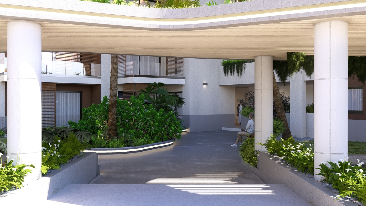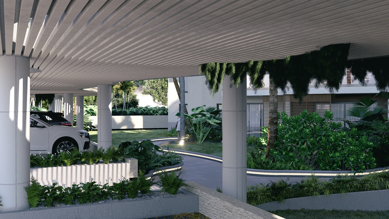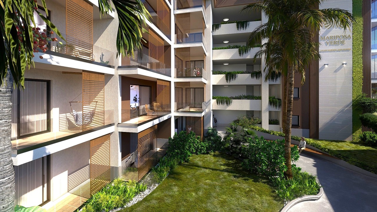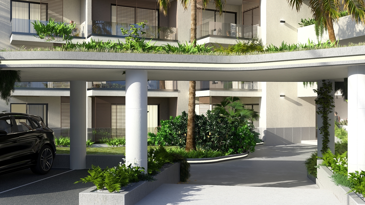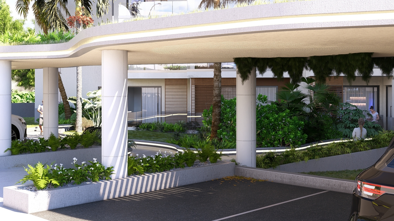 Een panoramisch zwembad op het dak, aangedreven door zonne-energie, prachtige tuinen en groene zones met ontspanningsruimtes, 24/7 beveiliging met gecontroleerde toegang en een recyclingzone voor duurzaam afvalbeheer.