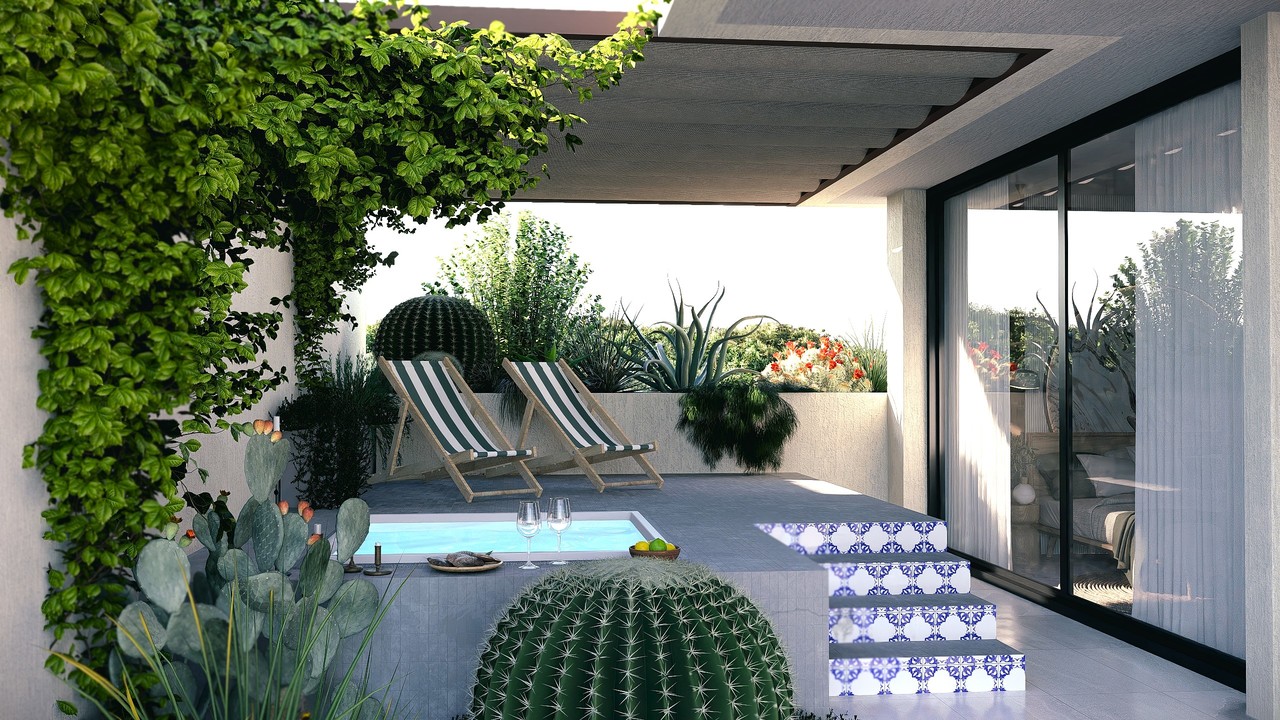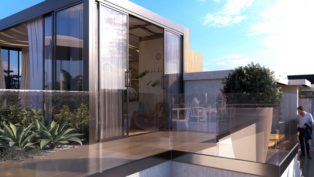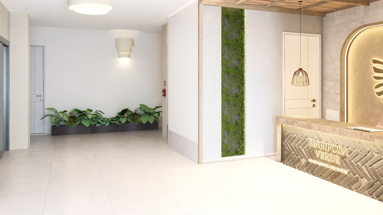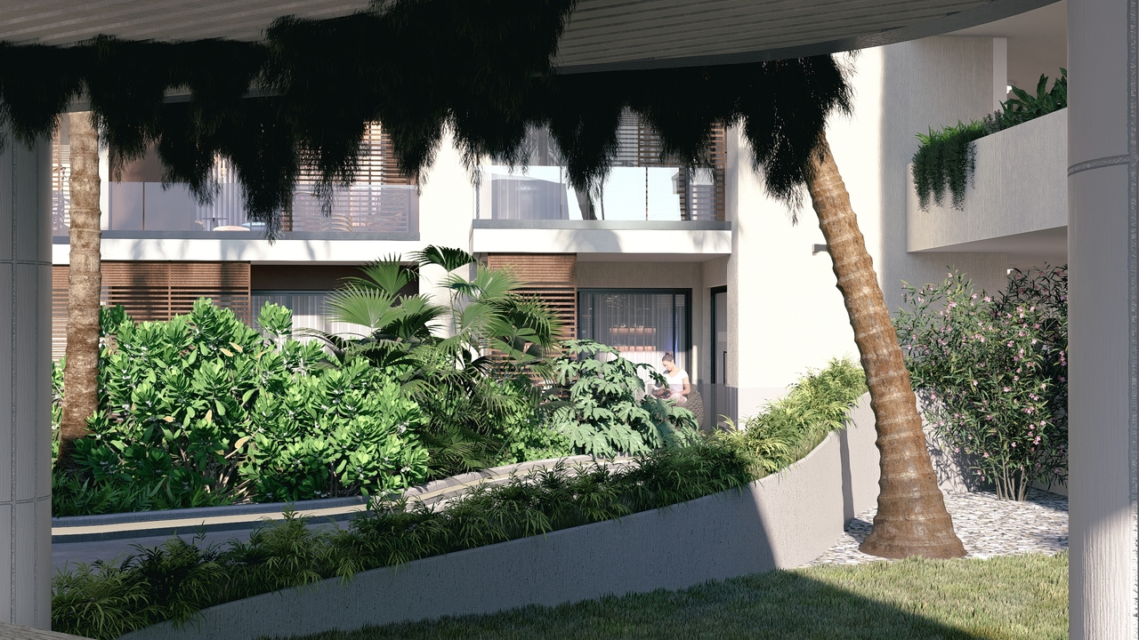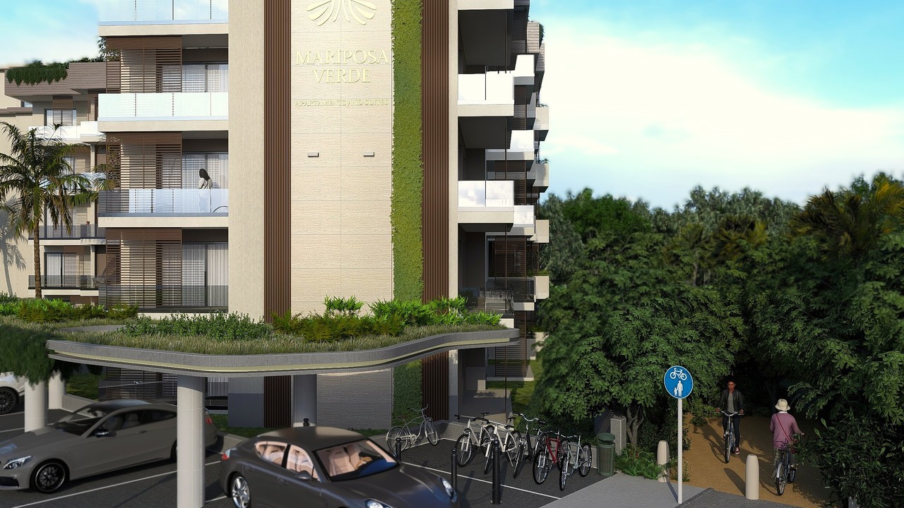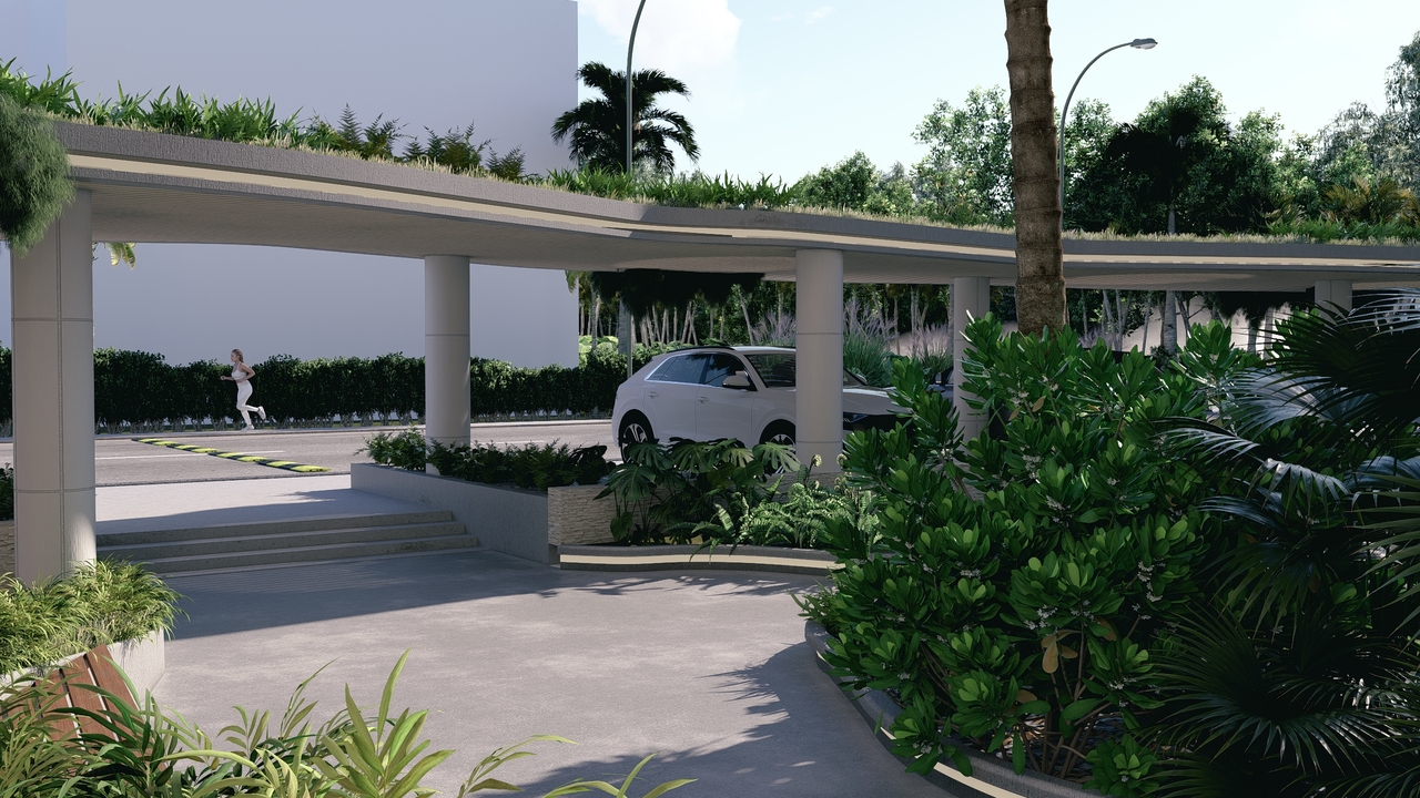 Een panoramisch zwembad op het dak, aangedreven door zonne-energie, prachtige tuinen en groene zones met ontspanningsruimtes, 24/7 beveiliging met gecontroleerde toegang en een recyclingzone voor duurzaam afvalbeheer.