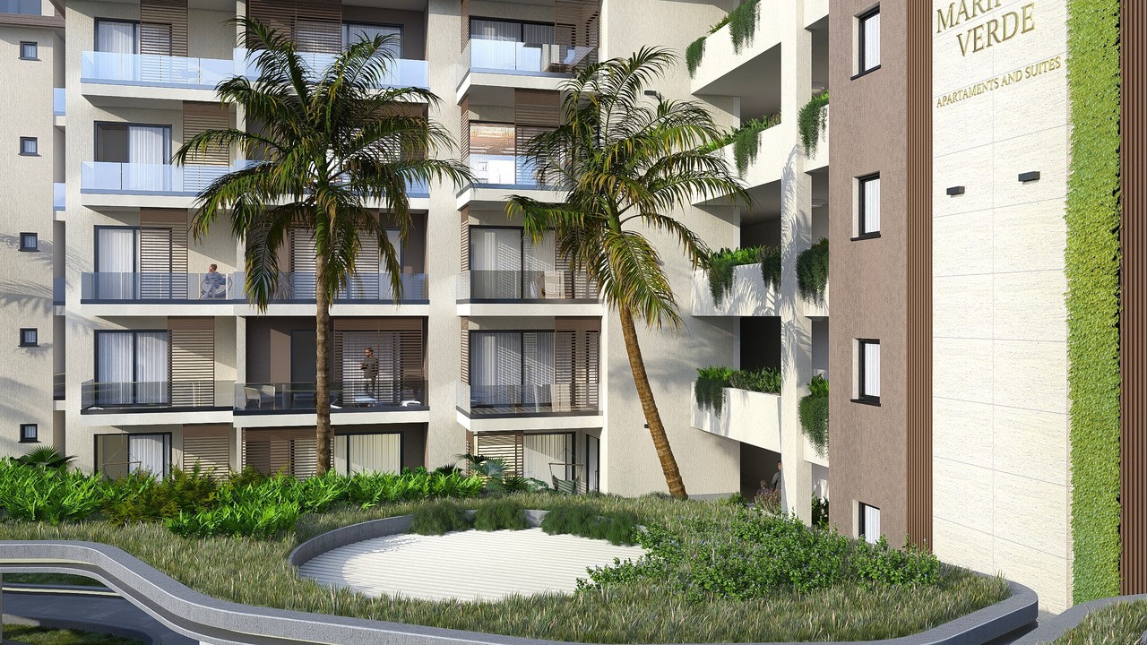 Het verrijst in èèn van de meest gegeerde woonwijken van Bávaro, Dominicaanse Republiek, in de immer gezellige wijk van Los Corales, op slechts een steenworp afstand van de Caribische stranden.