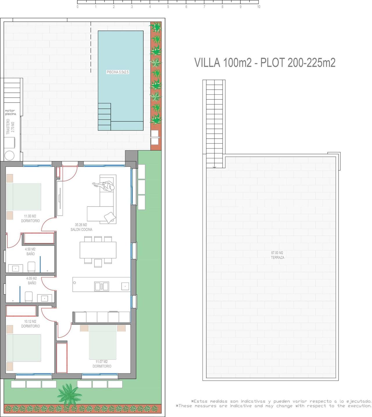 NIEUWBOUW HALFVRIJSTAANDE VILLA’S IN SAN JAVIER Nieuwbouw van vrijstaande en halfvrijstaande villa’s in San Javier. Villas gebouwd over 1 verdieping en bestaat uit 3 slaapkamers, 2 badkamers, open keuken, de woonkamer met open uitzicht op het terras, solarium, prive tuin met het zwembad. Volledig ingerichte keuken in wit glans of hout kleur omvat Inductie kookplaat met geïntegreerde afzuigkap, oven, magnetron, wasmachine, geïntegreerde koelkast, en geïntegreerde vaatwasser. Volledige Air Conditioning installatie via kanalen. Zwembad heeft pre-installatie voor warmtepomp. San Javier ligt dicht bij alle voorzieningen met gemakkelijke toegang tot het strand, watersporten, winkels en het transportnetwerk. Hier kunt u genieten van alle faciliteiten die San Javier te bieden heeft, zoals de plaatselijke winkels, bars en restaurants, maar ook in de buurt van winkelcentra, de luchthaven van Murcia en alle mooie plekken die langs de Mar Menor te vinden zijn. De luchthaven van Corvera/Murcia ligt op 30 minuten afstand en die van Alicante op 45 minuten.