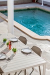 De aparte keuken biedt directe toegang tot de achterzijde van het pand, waar u een privézwembad, een buitenkeuken en toegang tot het solarium vindt – perfect om te genieten van de mediterrane levensstijl. Vanuit de keuken is er ook directe toegang tot de inpandige garage en een multifunctionele ruimte onder de garage. Deze ruimte is ideaal te gebruiken als extra slaapkamer, sociale ruimte, entertainmentruimte of een gezellige studio/thuiskantoor.