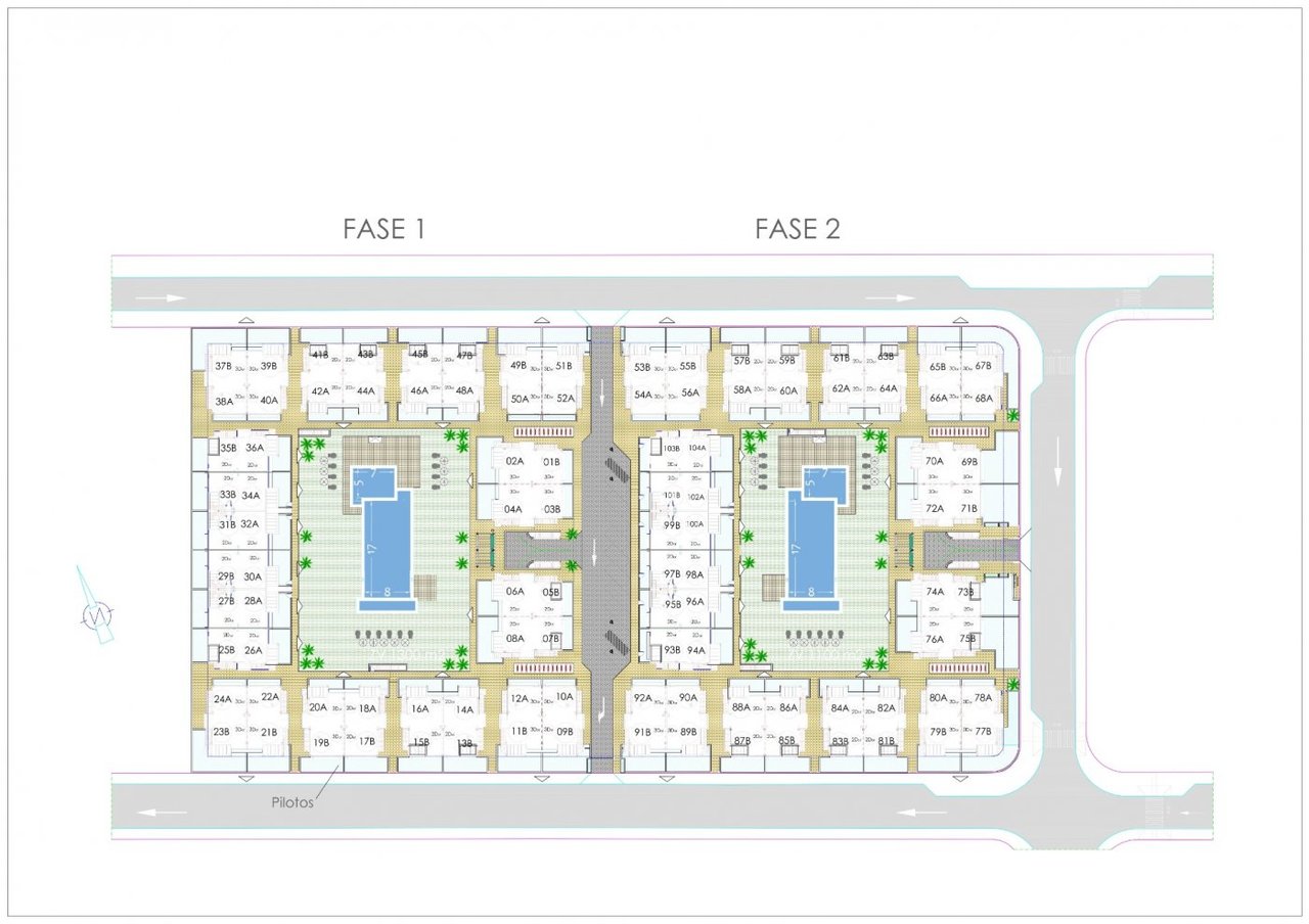 NIEUWBOUW COMPLEX VAN BUNGALOW APPARTEMENTEN IN LOS BALCONES, TORREVIEJA Nieuwbouw wooncomplex met prachtig uitzicht op het roze zoutmeer in Los Balcones. Complex bestaat uit 104 bungalow appartementen met 2 en 3 slaapkamers, bovenste verdieping bungalow heeft prive solariums met een panoramisch uitzicht op het zoutmeer en begane grond bungalows hebben grote terrassen met uitzicht op de groene omgeving. Deze bungalows delen prachtige groene zones en 2 grote zwembaden. Optionele ondergrondse parkeergarage en opslagruimten zijn beschikbaar. Deze residentie biedt een modern design, geselecteerde materialen, appartementen afgewerkt volgens de hoogste specificaties met alleen topkwaliteit materialen. De Residential zal worden gebouwd tegen een heuvel, op deze manier het uitzicht en ook de lucht is duidelijk en unieke kwaliteit. Los Balcones ligt net buiten Torrevieja met alle toegankelijke diensten, op slechts 5 minuten van Playa de Los Náufragos, supermarkten, de school en het winkelcentrum La Zenia Boulevard, en op een minuut van het universitair ziekenhuis van Torrevieja. Verder vindt u 4 golfbanen binnen een korte rit, waaronder de bekroonde Las Colinas Golf & Country Club. Complex gelegen op 40 minuten van Alicante luchthaven en 1 uur Murcia – Corvera luchthaven.