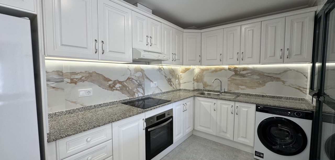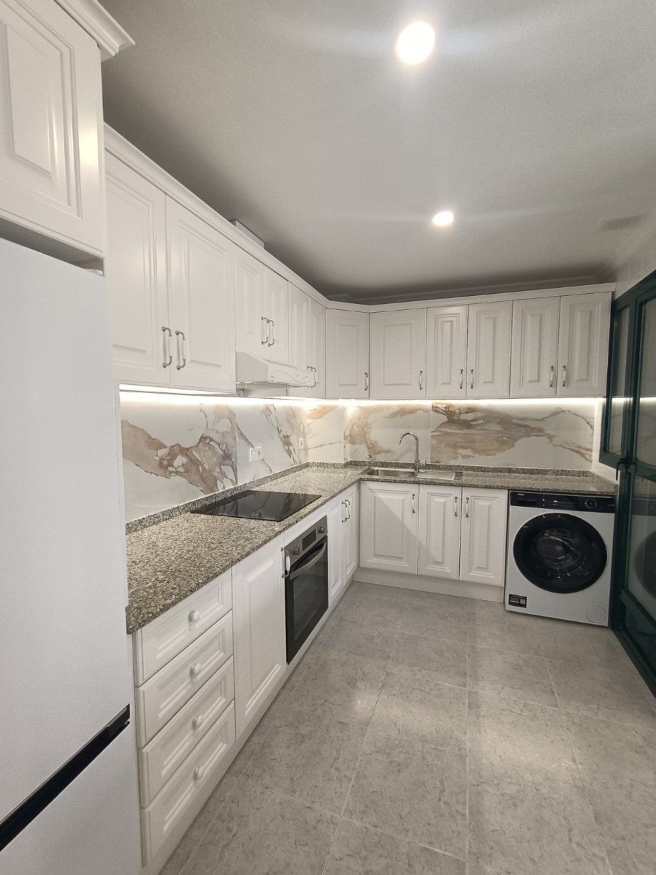 Dit volledig gerenoveerde appartement met zuidligging ligt in het prestigieuze golfgebied van Lomas de Campoamor en biedt een perfecte combinatie van comfort en stijl. Met 83 m² woonoppervlak beschikt het over 2 slaapkamers en 2 badkamers. Hoogwaardige afwerking met porseleinen tegels en natuursteen. Volledig naar buiten gericht, veel licht en ventilatie. Voorzien van airconditioning, gasverwarming, dubbele boiler en beveiligingssysteem. Lift aanwezig. Gemeenschappelijk zwembad en groene zones.