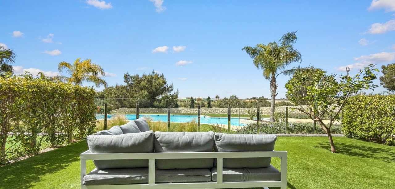 Welkom in dit moderne gelijkvloers appartement in het prestigieuze Lo Romero Golf Resort. Gebouwd in 2023 en in nieuwstaat, beschikt de woning over 2 slaapkamers en 2 badkamers. De woning heeft twee ruime terrassen: een aan de voorkant met ochtendzon en een groot terras aan de achterkant met zon gedurende de dag en uitzicht op het zwembad en de golfbaan. Wordt volledig gemeubileerd verkocht en inclusief privé parkeerplaats in een afgesloten gemeenschap.