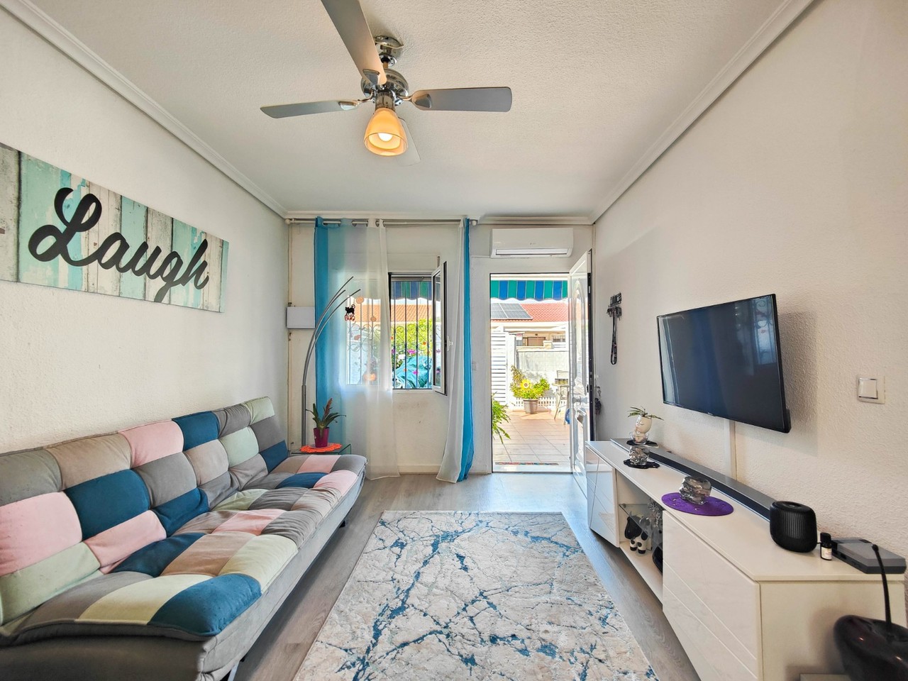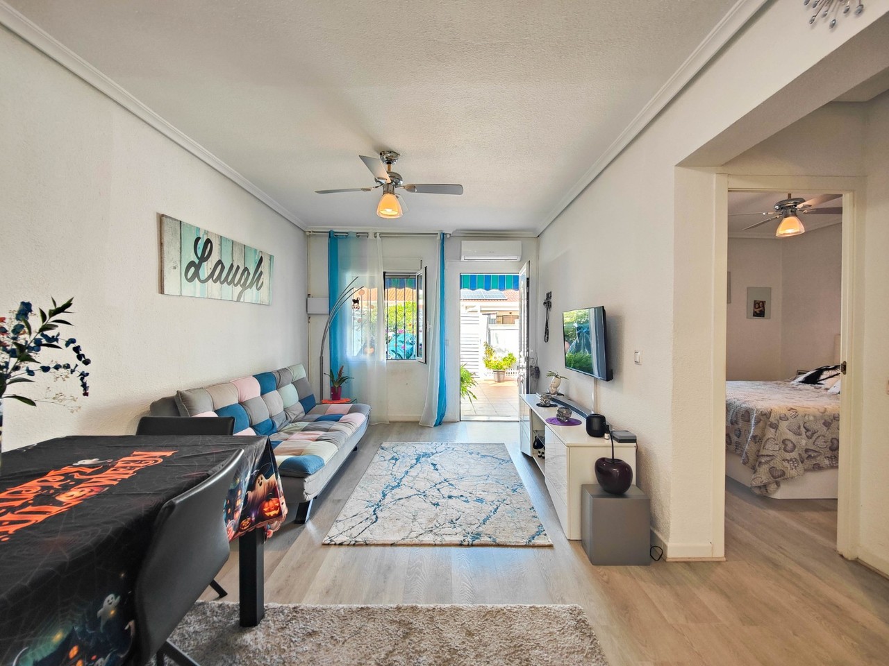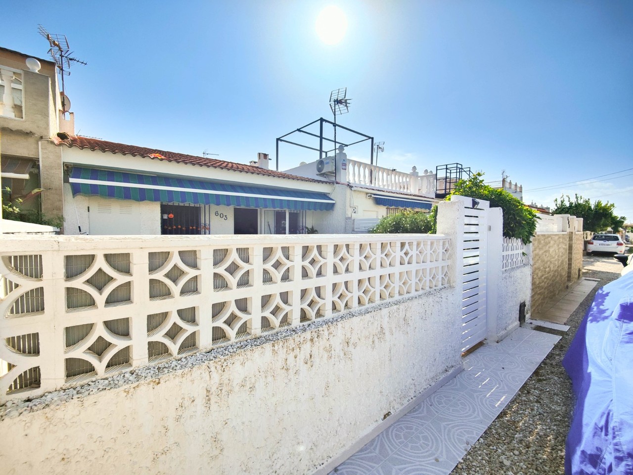 Charmante gerenoveerde gelijkvloerse bungalow te koop in de rustige urbanisatie La Torreta in Torrevieja, een populaire locatie aan de Costa Blanca dankzij de nabijheid van alle voorzieningen. De woning heeft geen bovenburen, wat zorgt voor extra privacy en rust. Er is een privé tuin van ongeveer 44 m² met een berging, ideaal om buiten te genieten van het mediterrane klimaat. De woning beschikt over 2 slaapkamers, 1 badkamer met inloopdouche en een lichte woon-eetkamer met open keuken, wat zorgt voor een moderne en praktische indeling. Met 42 m² bebouwd is de woning volledig gerenoveerd en instapklaar. Wordt gedeeltelijk gemeubileerd verkocht. Gelegen in een zeer rustige omgeving, maar dicht bij alle voorzieningen zoals scholen, supermarkten en openbaar vervoer. ✔ Geen gemeenschapskosten ✔ IBI slechts €100 per jaar ✔ Gemeenschappelijk parkeergelegenheid Een ideale woning als vakantiehuis, permanente woning of investering in Torrevieja.