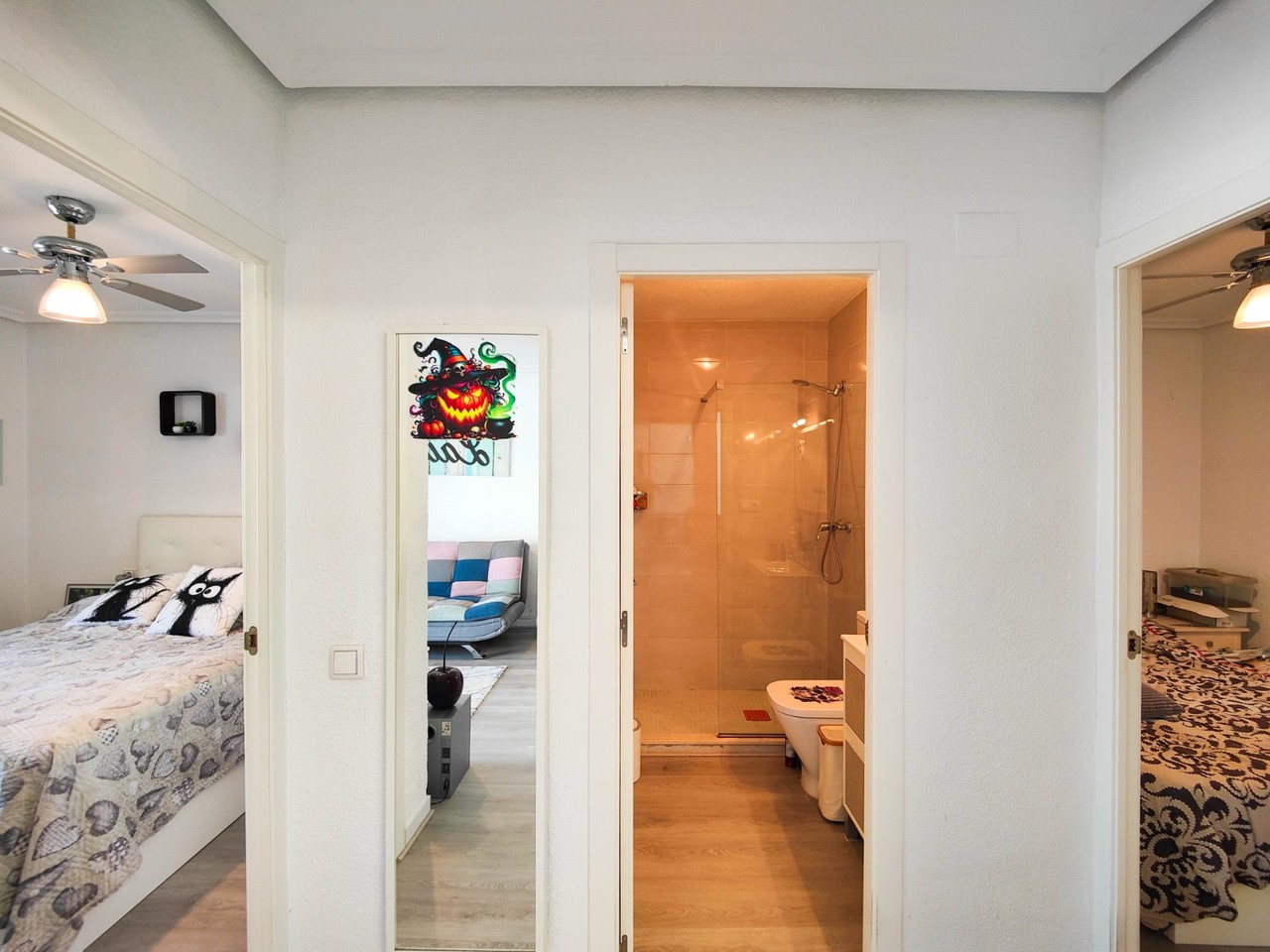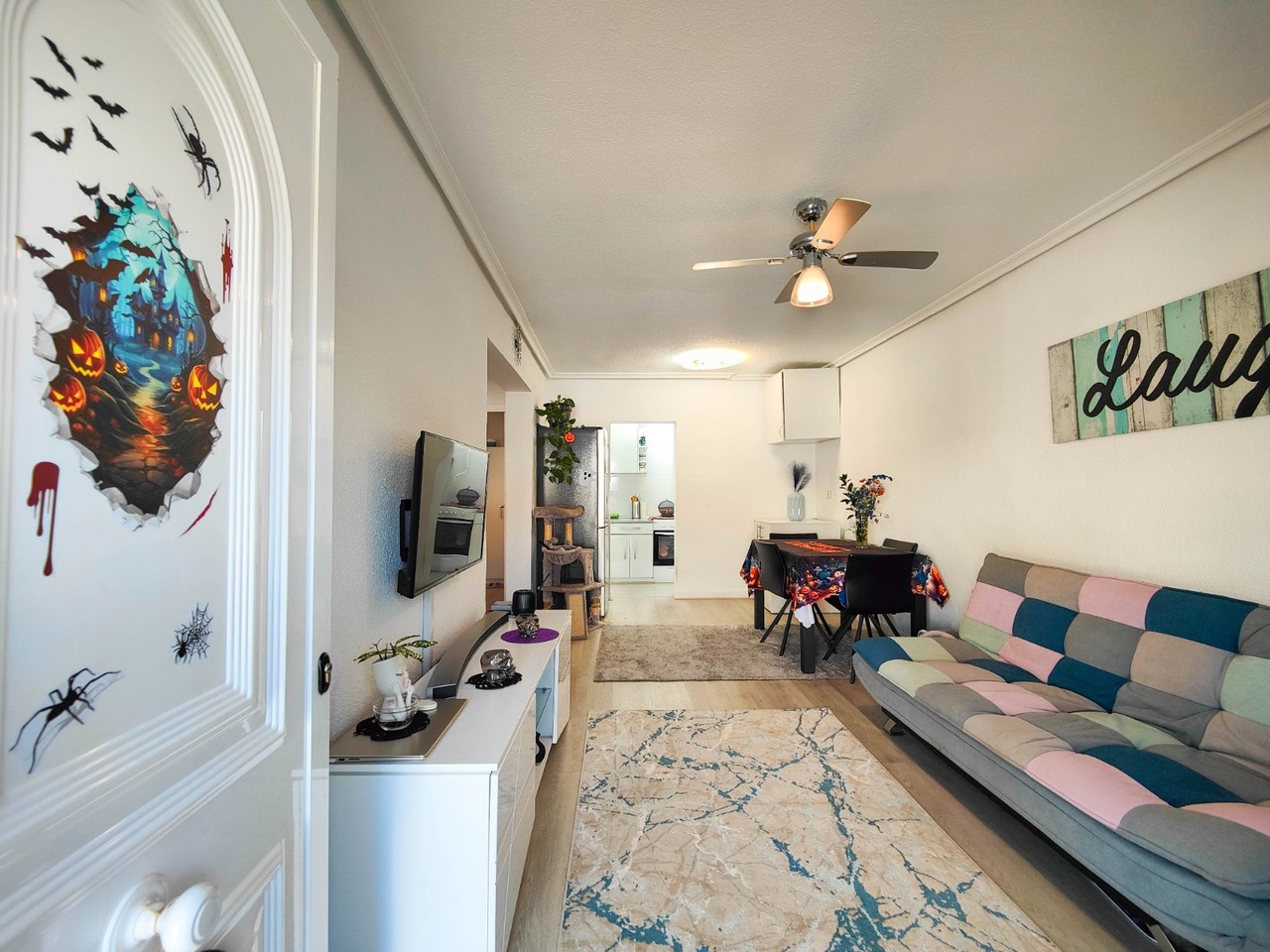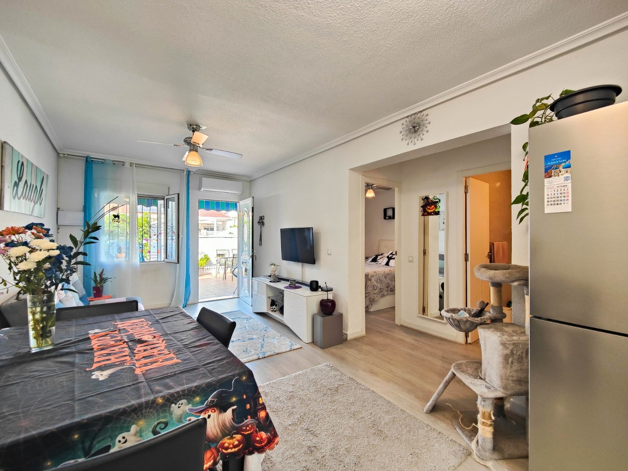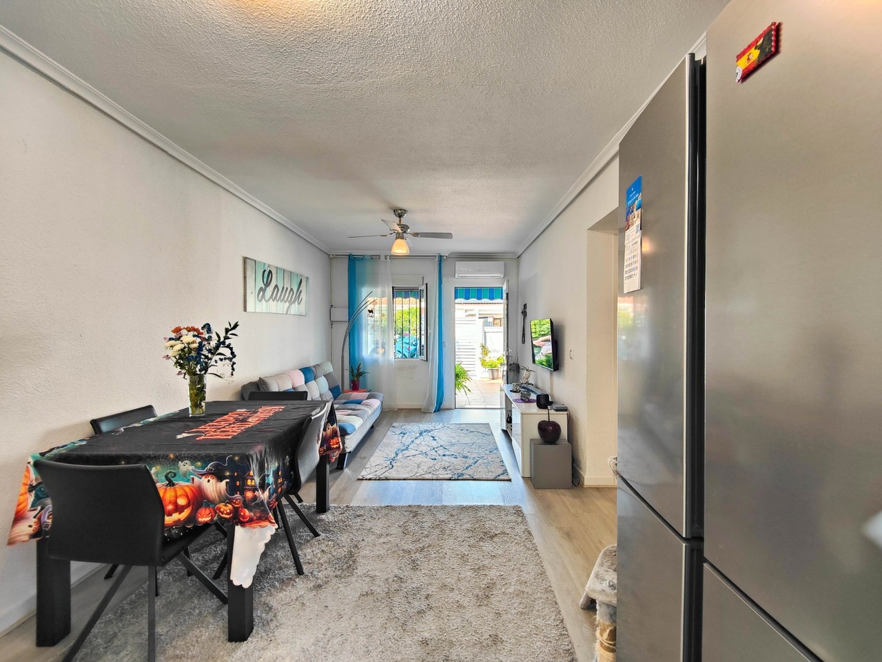 Charmante gerenoveerde gelijkvloerse bungalow te koop in de rustige urbanisatie La Torreta in Torrevieja, een populaire locatie aan de Costa Blanca dankzij de nabijheid van alle voorzieningen. De woning heeft geen bovenburen, wat zorgt voor extra privacy en rust. Er is een privé tuin van ongeveer 44 m² met een berging, ideaal om buiten te genieten van het mediterrane klimaat. De woning beschikt over 2 slaapkamers, 1 badkamer met inloopdouche en een lichte woon-eetkamer met open keuken, wat zorgt voor een moderne en praktische indeling. Met 42 m² bebouwd is de woning volledig gerenoveerd en instapklaar. Wordt gedeeltelijk gemeubileerd verkocht. Gelegen in een zeer rustige omgeving, maar dicht bij alle voorzieningen zoals scholen, supermarkten en openbaar vervoer. ✔ Geen gemeenschapskosten ✔ IBI slechts €100 per jaar ✔ Gemeenschappelijk parkeergelegenheid Een ideale woning als vakantiehuis, permanente woning of investering in Torrevieja.