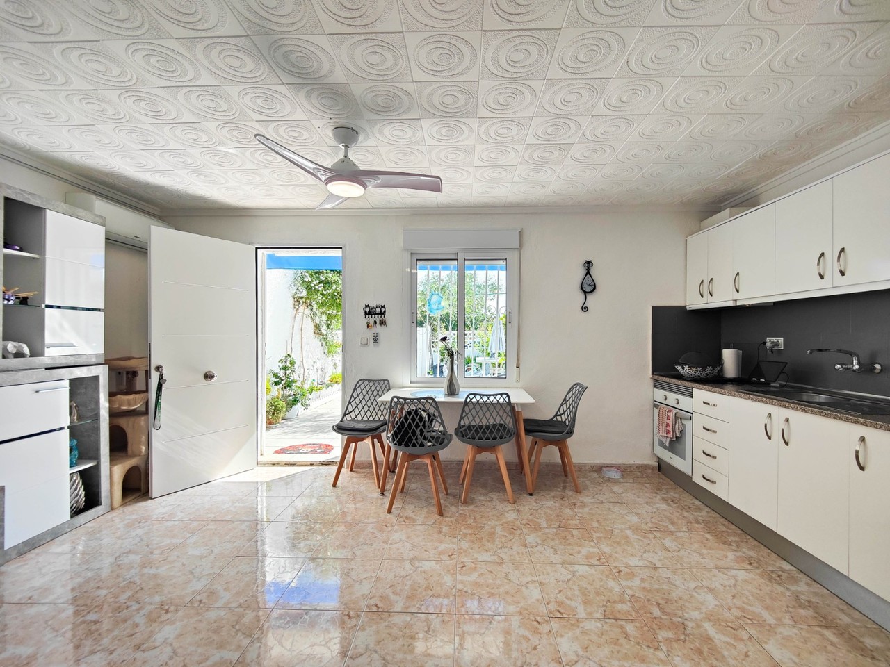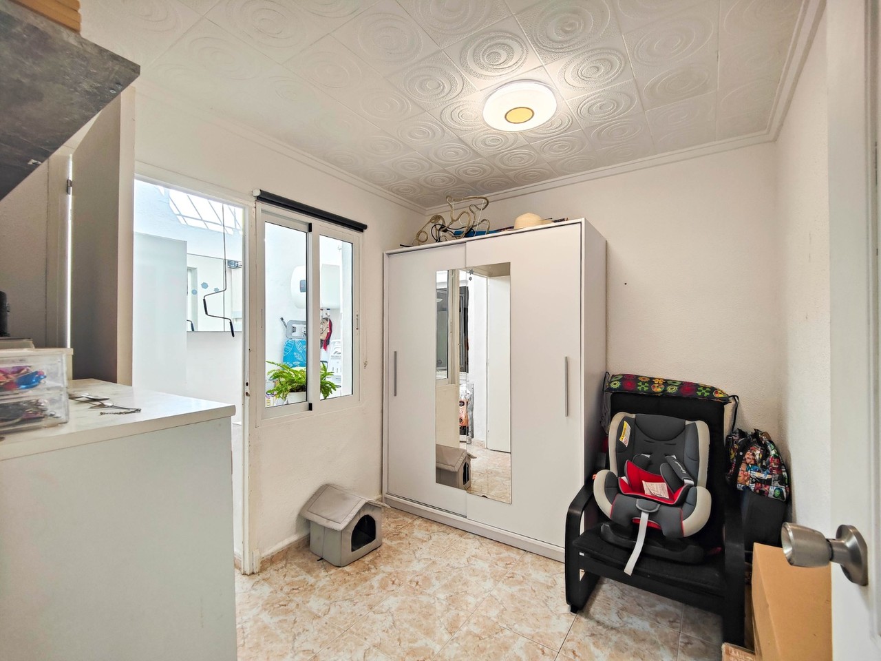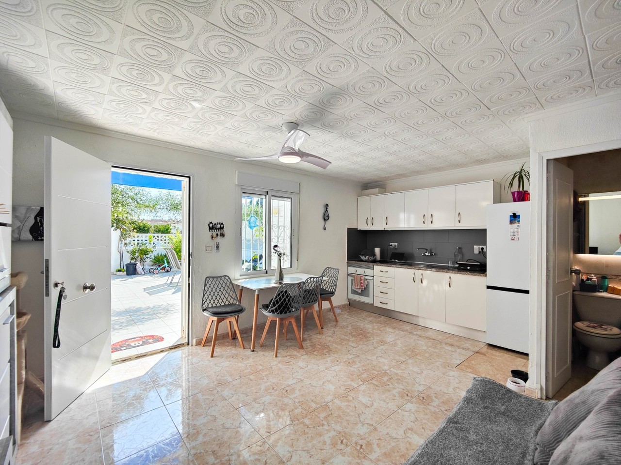 Charmante gerenoveerde gelijkvloerse bungalow te koop in de rustige urbanisatie La Torreta in Torrevieja, een populaire locatie aan de Costa Blanca dankzij de nabijheid van alle voorzieningen. De woning heeft geen bovenburen, wat zorgt voor extra privacy en rust. Door de zuidelijke oriëntatie geniet de woning de hele dag van zonlicht. Er is een privé tuin van ongeveer 44 m² met een berging, ideaal om buiten te genieten van het mediterrane klimaat. De woning beschikt over 2 slaapkamers, 1 badkamer met inloopdouche en een lichte woon-eetkamer met open keuken, wat zorgt voor een moderne en praktische indeling. Met 42 m² bebouwd is de woning volledig gerenoveerd en instapklaar. Wordt gedeeltelijk gemeubileerd verkocht. Gelegen in een zeer rustige omgeving, maar dicht bij alle voorzieningen zoals scholen, supermarkten en openbaar vervoer. ✔ Geen gemeenschapskosten ✔ IBI slechts €100 per jaar ✔ Gemeenschappelijk parkeergelegenheid ✔ Open uitzicht op groene zone Een ideale woning als vakantiehuis, permanente woning of investering in Torrevieja.