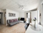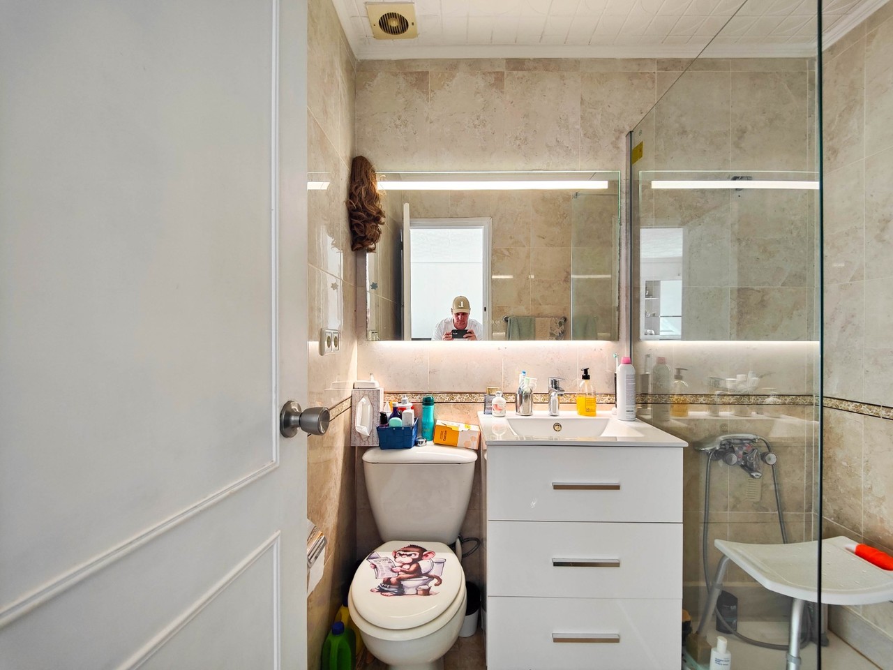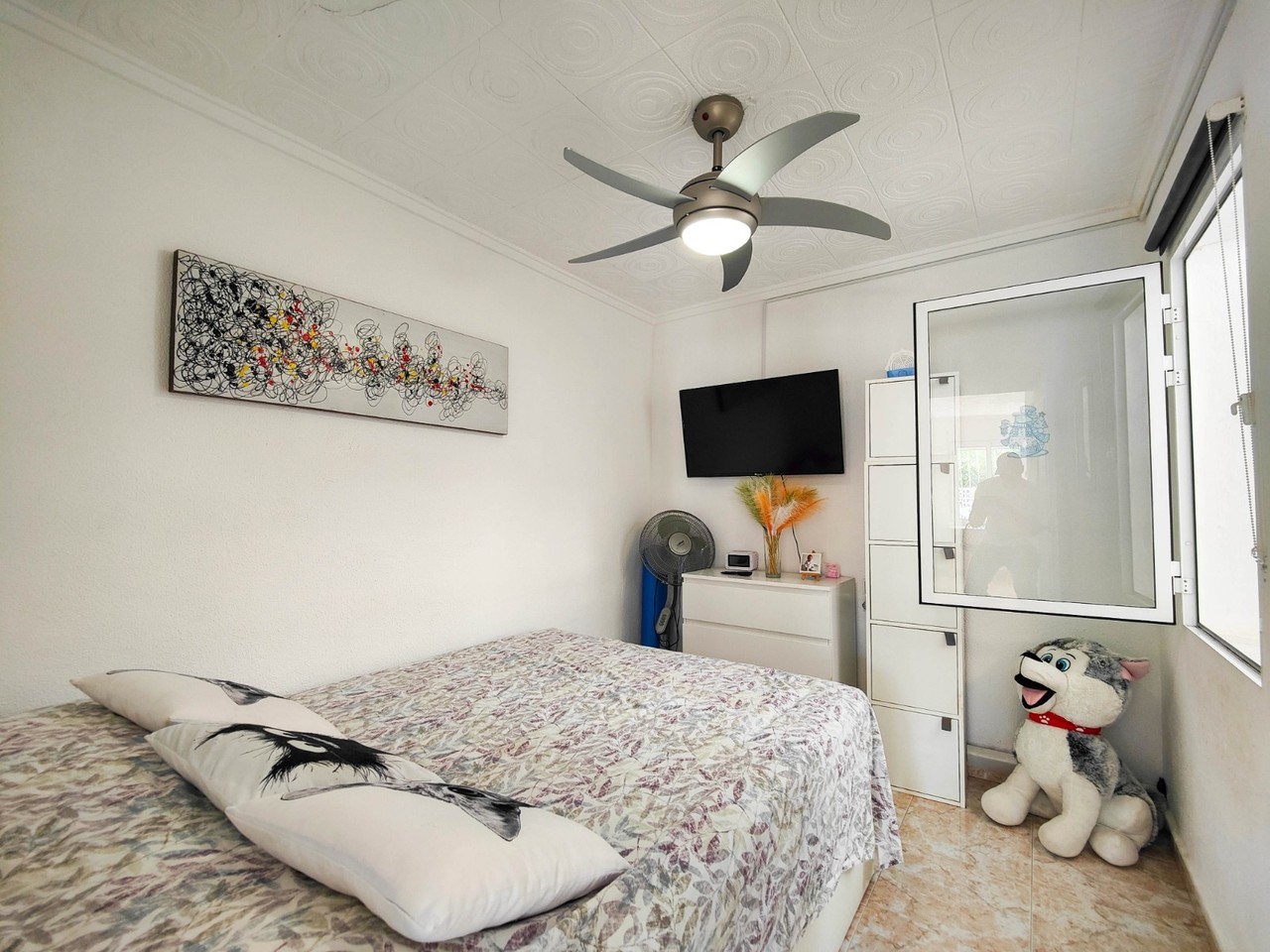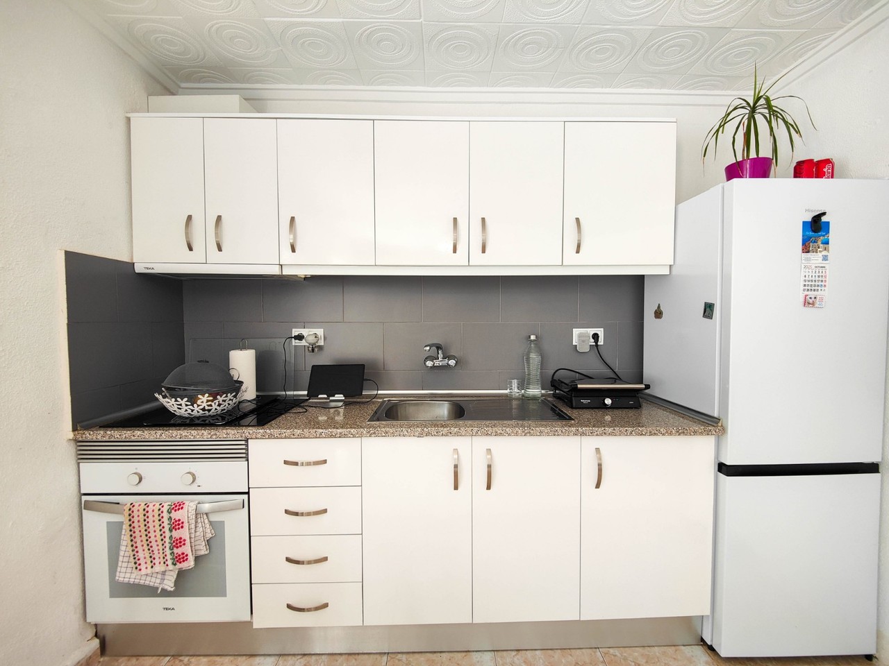 Charmante gerenoveerde gelijkvloerse bungalow te koop in de rustige urbanisatie La Torreta in Torrevieja, een populaire locatie aan de Costa Blanca dankzij de nabijheid van alle voorzieningen. De woning heeft geen bovenburen, wat zorgt voor extra privacy en rust. Door de zuidelijke oriëntatie geniet de woning de hele dag van zonlicht. Er is een privé tuin van ongeveer 44 m² met een berging, ideaal om buiten te genieten van het mediterrane klimaat. De woning beschikt over 2 slaapkamers, 1 badkamer met inloopdouche en een lichte woon-eetkamer met open keuken, wat zorgt voor een moderne en praktische indeling. Met 42 m² bebouwd is de woning volledig gerenoveerd en instapklaar. Wordt gedeeltelijk gemeubileerd verkocht. Gelegen in een zeer rustige omgeving, maar dicht bij alle voorzieningen zoals scholen, supermarkten en openbaar vervoer. ✔ Geen gemeenschapskosten ✔ IBI slechts €100 per jaar ✔ Gemeenschappelijk parkeergelegenheid ✔ Open uitzicht op groene zone Een ideale woning als vakantiehuis, permanente woning of investering in Torrevieja.